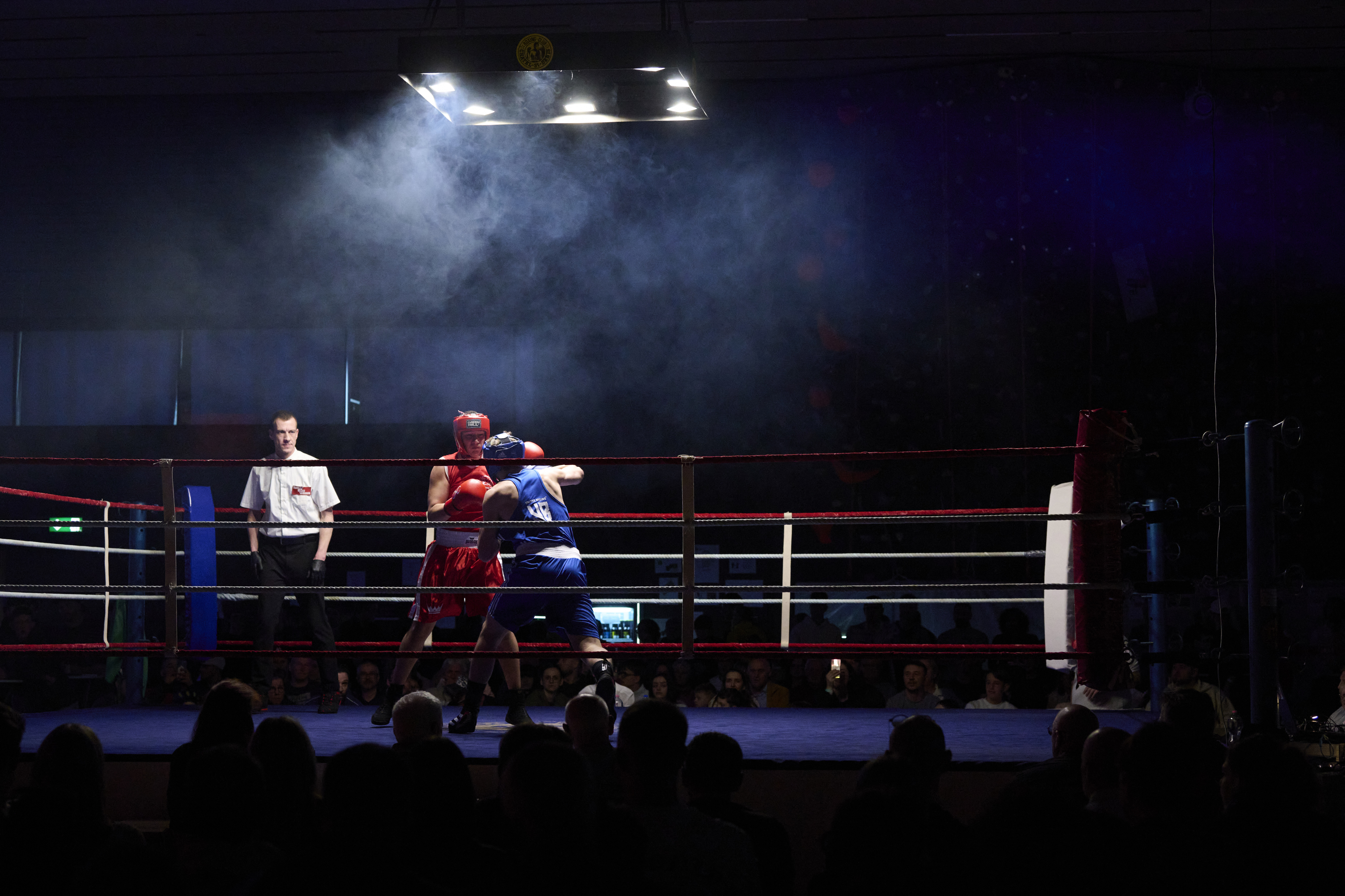 Kräftemessen im Boxring. Am Box-Meeting in Châtel-Saint-Denis am Ostersamstag kämpften Frauen und Männer um Sieg und Ehre. Angefeuert wurden sie dabei von rund 850 Personen. Was diese nicht sehen können: wie hart die Schläge auf den Gesichtern landen. Erst die eingefrorene Bewegung auf dem Foto lässt diese Sicht zu und sie zeigt, wie es zur Sache geht.